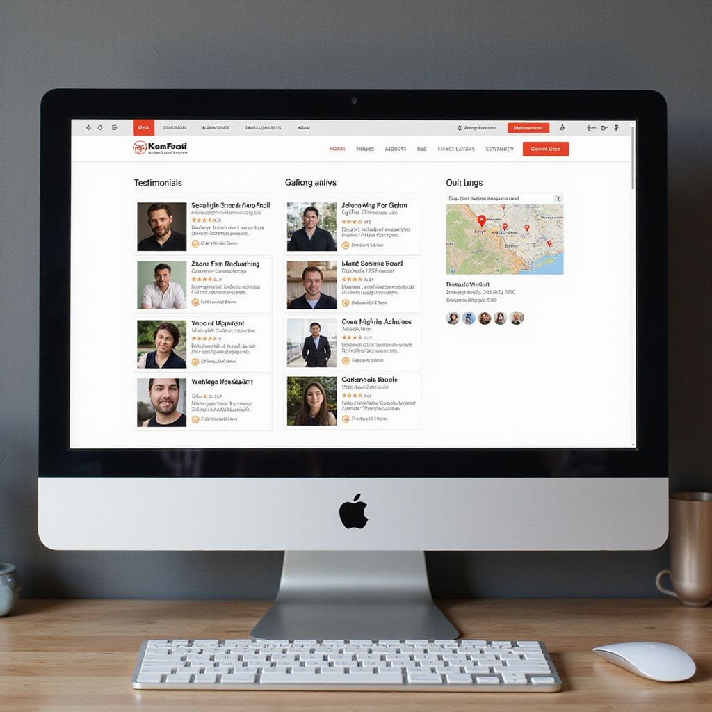 Website features include testimonials, reviews, contact details, and photo galleries to build credibility and engage visitors. These elements support trust and interaction.